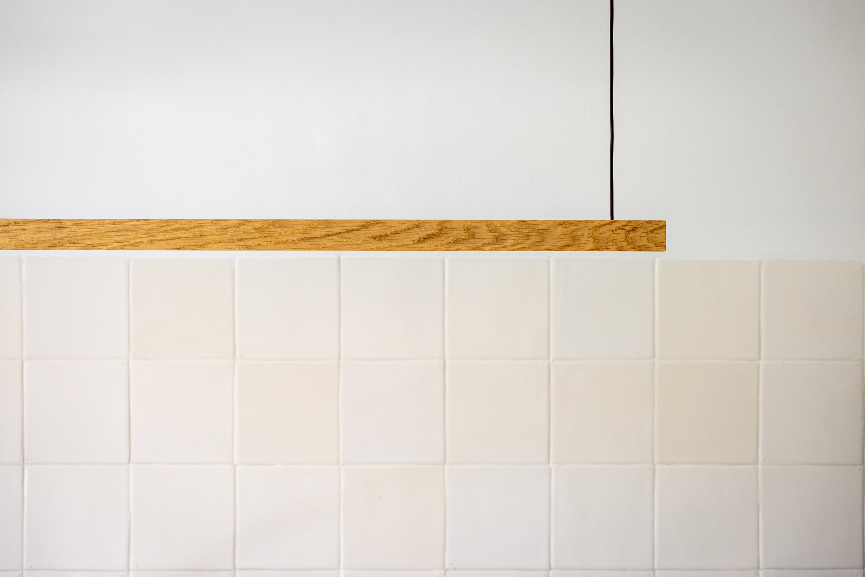 Eikenhouten hanglamp met dimbare LED’s.